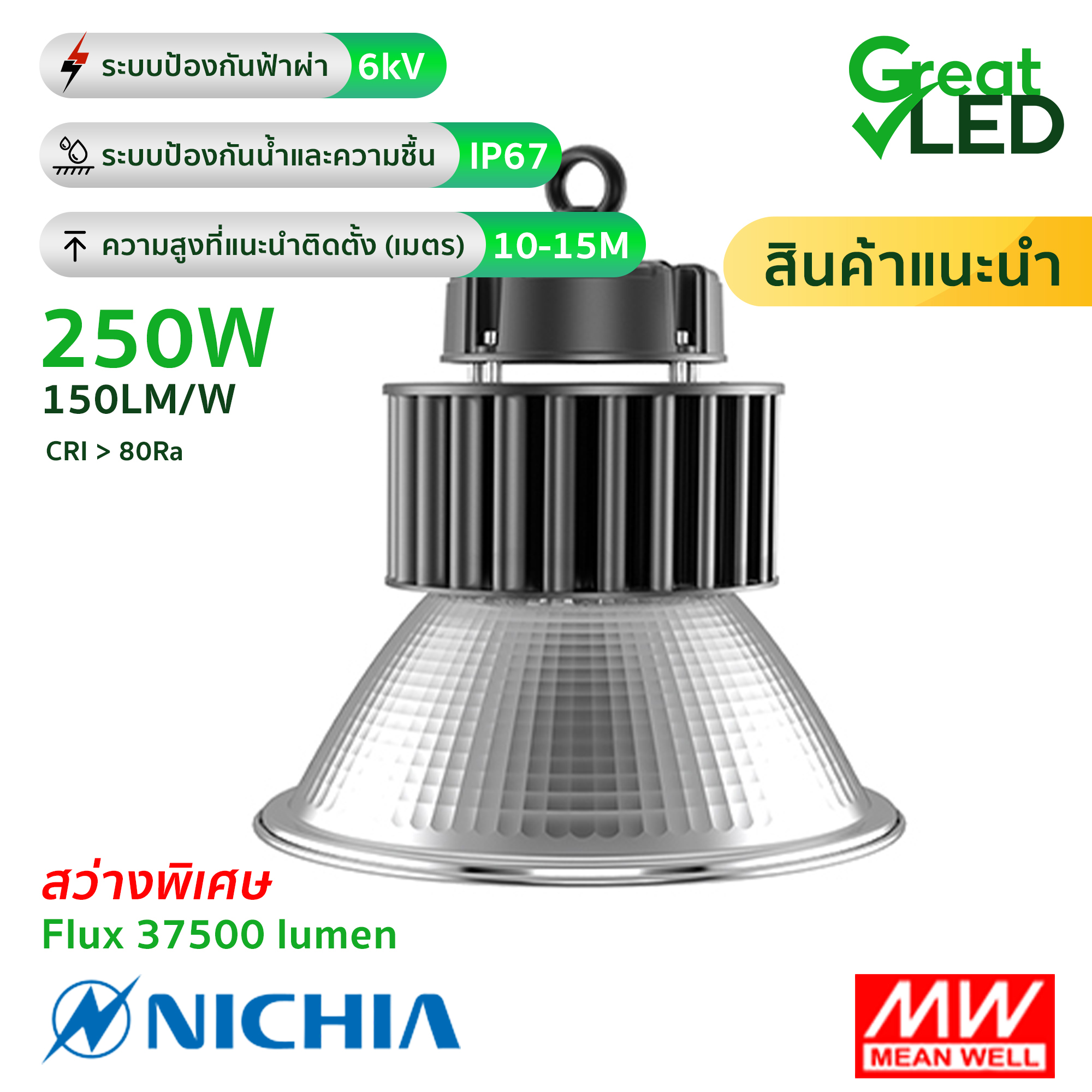 โคมไฟ LED HIGH-BAY OEM 250W - **สว่างพิเศษ - ประกัน 5 ปี - Great LED ศูนย์รวมโคมไฟโรงงาน โคมไฮเบย์ LED